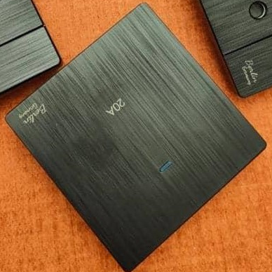 Experience the perfect fusion of luxury and functionality with the Berlin Collection 20A Wall Switch. This premium fixture features a sophisticated dark brushed metal finish that exudes elegance while providing exceptional durability. The distinctive linear texture adds depth and visual interest to your walls, while the subtle blue LED indicator ensures you can easily locate the switch in any lighting condition. Designed for modern homes that demand both style and performance, this switch is built to handle high-power appliances with ease.