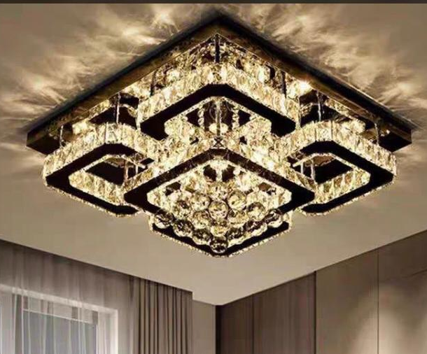 - •Striking Geometric Design: Features a unique, layered square structure with overlapping frames that create a 3D effect, making it a true focal point for your ceiling.