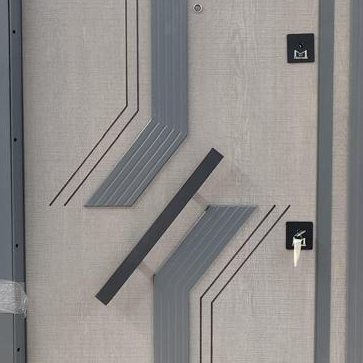 Elevate your home's facade with this avant-garde Modern Geometric Security Door from Pars Steel Doors. This fixture is a masterclass in contemporary design, featuring a sophisticated light grey textured finish that is artistically interrupted by bold, dark grey ribbed accents. The asymmetrical diagonal lines create a sense of dynamic movement, transforming a standard entryway into a piece of abstract art. Built for both beauty and resilience, this door offers a sleek, architectural look that perfectly complements modern villas, luxury apartments, and high-end offices.