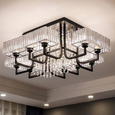 Rectangular Crystal Semi-Flush Mount Chandelier