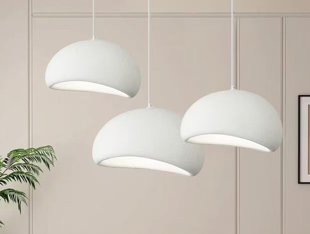 Bring a touch of whimsical elegance to your dining space with this stunning Modern Asymmetrical Dome Pendant Light. Featuring a unique "tilted saucer" silhouette, this fixture breaks the mold of traditional lighting with its playful yet sophisticated geometry. The exterior boasts a premium matte white finish with a subtle, soft-touch texture that adds warmth and depth. The slanted design directs a gentle, glare-free glow downwards, creating an intimate and inviting atmosphere perfect for family meals. Suspended by slender white cords, these lights appear to float effortlessly, making them an ideal centerpiece for minimalist, Scandinavian, or Japandi interiors.