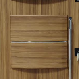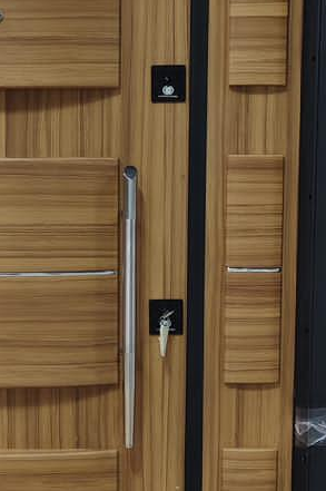 Elevate your home's entrance with this sophisticated Modern Steel Security Door by Pars Steel Doors. Perfectly blending the warmth of natural wood aesthetics with the rugged durability of steel, this door features a rich, teak-colored wood grain finish that exudes elegance. The design is punctuated by sleek horizontal stainless steel inlays and a contemporary long-handle pull, creating a striking visual rhythm. Equipped with a modern digital lock interface and a heavy-duty frame, this door offers peace of mind without compromising on style, making it the ideal choice for modern apartments, villas, and luxury homes.